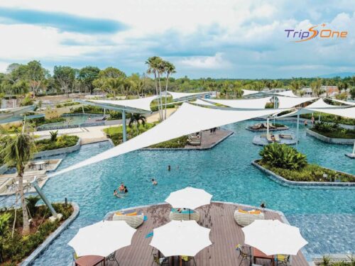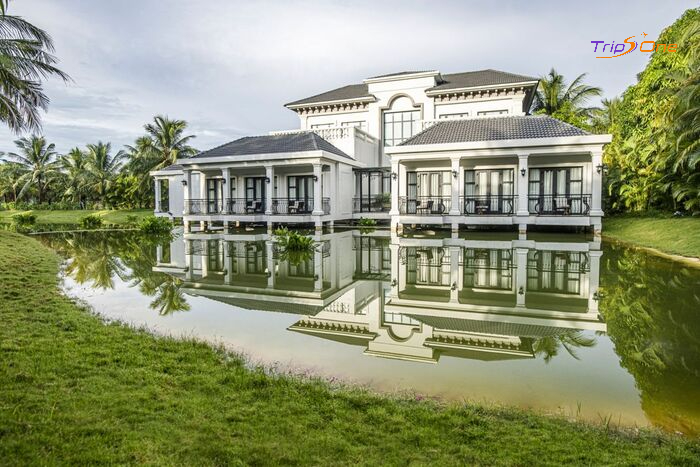 Đặc biệt, tất cả các biệt thự tại khu nghỉ dưỡng này đều có hồ bơi riêng và được bao quanh bởi dòng nước hiền hòa. Nét dịu dàng của những dòng nước uốn quanh các villa tại Vinpearl Resort & Spa Đà Nẵng vừa khiến khung cảnh nơi đây thêm phần lãng mạn, vừa gợi nhớ dáng hình của “nàng thơ” Venice Ý.