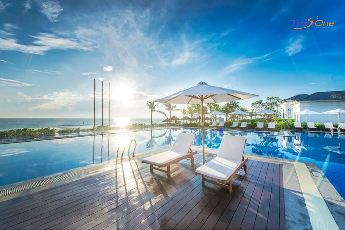 Vinpearl Resort & Spa Đà Nẵng được mọi người ví von như là “ốc đảo thanh bình giữa miền biển Non Nước”. Khu resort hiện lên trong bức tranh sơn thủy hữu tình với phong cách thiết kế tân cổ điển được hồ nước trong xanh uốn lượn xung quanh cùng những khu vườn hoa trái ngập tràn sắc hương.